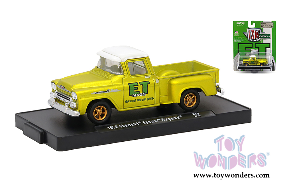 • 1958 Chevrolet® Apache™ Step Side™ Pickup in Gold Satin with Bright White Top - ET Mags