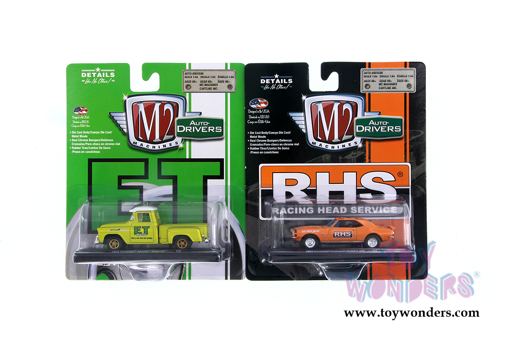 11228/49 Castline M2 Machines - Drivers Release 49. 1:64 scale diecast collectible model cars, 3.25" long die cast model cars. Real chrome bumpers and rubber tires. GM is a trademark of the General Motors Corporation. Each car sits on a display plaque, and individually blister carded. Card size is 5.5" x 6.5". Manufactured by Castline. 6 pcs per inner.