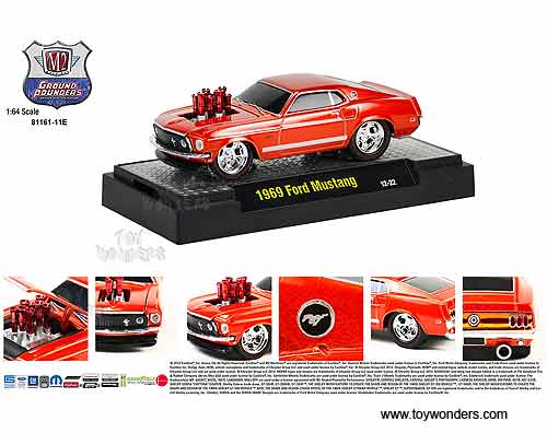 81161/11E Castline M2 Machines - Ground Pounders 1969 Ford Mustang Release 11E. 1:64 scale diecast collectible models. This 69 Ford Mustang is 3.25" long die cast model car with openable hood. Each car sits on a display plaque, and individually blister carded. Card size is 5.5" x 7.25". This 69 Ford Mustang is manufactured by Castline. 6 pcs per inner in assorted colors.