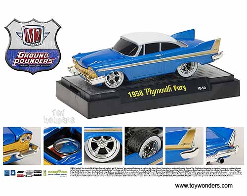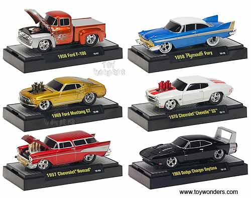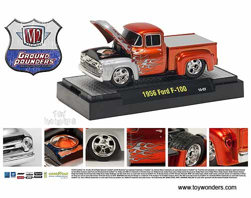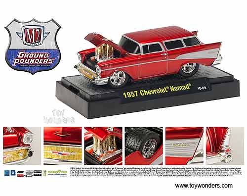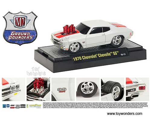 81161/03 Castline M2 Machines - Ground Pounders with Engine Blower Release 3. 1:64 scale diecast collectible models, 3" long die cast model cars with openable hoods. GM is a trademark of the General Motors Corporation. Each car sits on a display plaque, and individually blister carded. Card size is 5.5" x 7.25". Manufactured by Castline. 6 pcs per inner. Assortment includes: