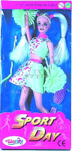 3342A/6 Cheerleader Doll. 11.5" fashion cheerleader doll includes accessories. Assorted styles of clothing. Box size: 6"Lx2.25"Wx12.5"H. 12 pcs/inner.