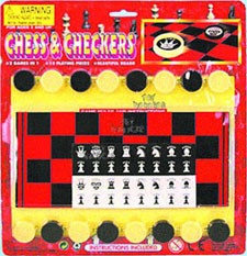 227 Chess & Checkers. Chess and Checkers in one. Card size: 11.5"x11". Great little set for travel, picnics, etc. 24 pcs/inner.