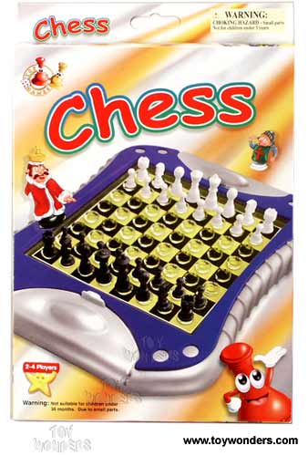 3346 Chess Game. Game set includes a 64-field board, 16 white chessmen and 16 black chessmen. Box size: 7.5"Lx 1"Wx 11.25"H.