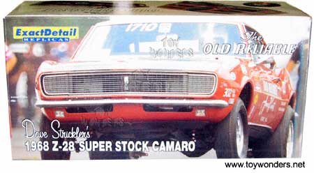 210BN ExactDetail - LANE 1968 Chevrolet Z-28 Super Stock Camaro Limited Edition: 1 of 3,996 pcs Scale: 1:18 Dave Strickler's Old Reliable Super Stock '68 Camaro die cast metal collectible car. Exact detail. Manufactured by Lane Automotives Color: Corvette bronze with drag racing graphics