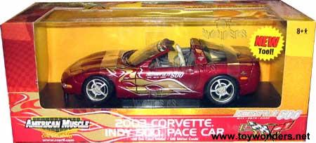 33255BG ERTL - American Muscle Chevrolet Corvette Convertible Indianapolis 500 Pace Car (2003) Scale: 1:18 2003 Chevy Corvette 50th Anniversary Corvette collection car. Manufactured by RC2 Brands Color: Burgundy with decals