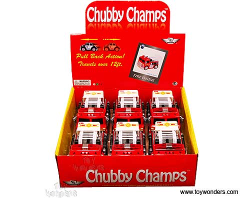 88002 Chubby Champs - Fire Engine. This Fire Truck is a 4.75"L x 2.75"W x 2.75"H rescue vehicle with pullback motor action. 6 pcs per display box. Note: This item contains no any diecast metal.