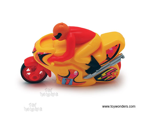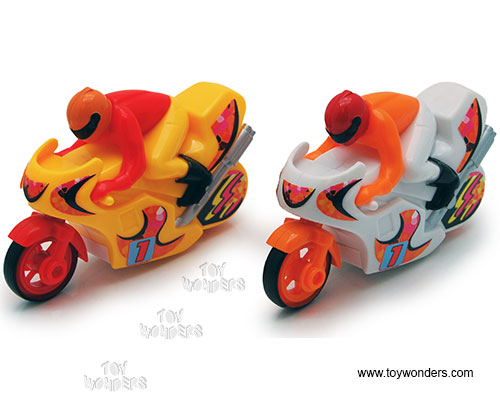 316D City Movers - Mini Cycle. This 4" friction powered bike comes in assorted colors.12 pcs per display box. 36 pcs per inner box. Sturdy plastic construction and contains no diecast metal. High quality frictionized motor; one push goes a long way.