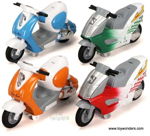 415/6D City Rider. 4.5" diecast metal motorcycle/ bike. Pull back action. 12 pcs per display box. 72 pcs per inner box. 415 in assorted colors.