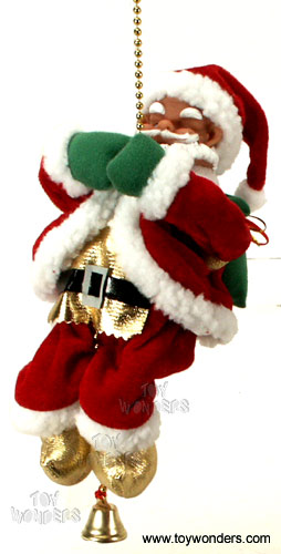 H385 Climbing Santa. 10" Santa climbs up and down the hanging chain to the Christmas music. 40" long chain can be hang anywhere. 2 "AA" batteries included. Box size: 4.75"L x 4.25"W x 9.5"H.