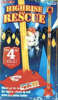 2019F DY TOYS Fireman. 49" ladder with a climbing fireman to the rescue. Great for getting attention!!! Requires 2 "AA" batteries. Box size: 7.5"W x 12.5"H x 4"D.