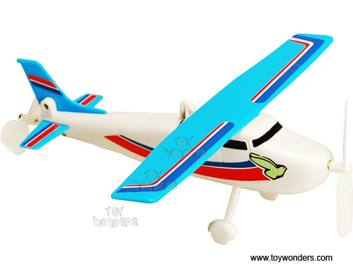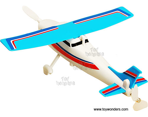 1076 DY TOYS flying Skyhawk. 8.25" long x 7.5" wing span, with spinning propeller, battery operated plane flies in a circle from your ceiling when attached by included string and ceiling mount. Looks similar to a Cesna airplane. Requires one "AA" battery (not included). Hang-up box is 9.25"W x 5.75"H x 2"D. Note that this item contains no diecast metal. Airplane is made of sturdy plastic.  Excellent quality motor too.