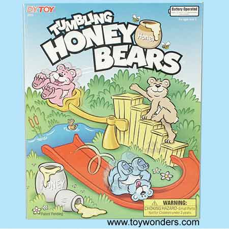 2015 DY TOYS Tumbling Honey Bears slide set. Bears climb up and slide down. Great attention getter. Requires 1"D" battery (not included). Requires some simple assembly; no tools necessary.