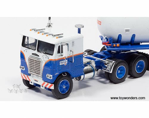 Die-cast-Promotions Gulf Oil - Freightliner Cab w/ Petroleum Gas Tanker (1/64 scale diecast model, White & Blue) 32331