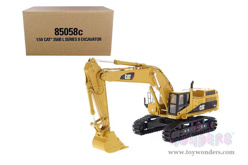 85058C Diecast Masters - Caterpillar® 365B L Series II Hydraulic Excavator with 2 PVC Figurines - Core Classics Series. 1:50 scale diecast collectible model. This CAT 365B L Excavator is a 10.25"L x 3.25"W x 4.5"H die-cast metal model. Manufactured by Diecast Masters. 85058C is in yellow color. Core Classics Series Packaging: Distinctive unbleached cardboard window box, printed with machine photo and specifications. Molded PVC blister protects model within the package. Cardboard outer box provides additional protection.
