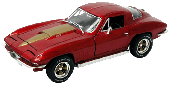 33813 ERTL - American Muscle 1967 Chevrolet Corvette Coupe Roadster. 1:18 scale diecast model car. This 1967 Chevy Corvette is a diecast metal sports car with opening hood & doors. This 1967 Corvette is manufactured by American Muscle. RC2 Brands. Individually packed in a window box. 33813 in RED color.
