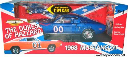 ERTL - Ford Mustang GT Dukes of Hazard (1968, 1/18 scale die cast model car, Blue) 33043BU
