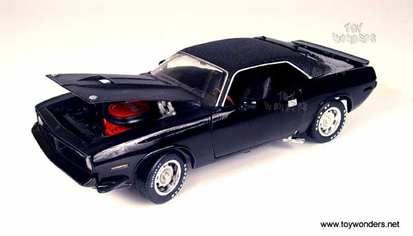 33958BK ERTL - American Muscle 1970 Plymouth AAR Barracuda. 1:18 scale diecast model car. This 1970 Plymouth has opening hood & doors. This 70 Plymouth is manufactured by RC2 Brands. Individually packed in a window box. 33958 in BLACK color.