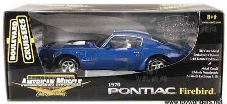 33816BU ERTL - American Muscle 1970 Pontiac Trans Am. 1:18 scale diecast model car. This 1970 Pontiac Trans Am diecast metal has white interior. This 70 Pontiac Trans Am is manufactured by American Muscle. RC2 Brands; ref. no. 33816 in Viper BLUE color.