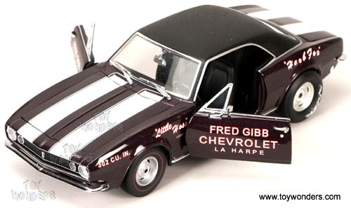 211P EXACT DETAIL 1967 Chevrolet Camaro Z-28 Hard Top Limited Edition: 1 of 2,000 pcs Scale: 1:18 Fred Gibb's Little Hoss Z-28 Stock Elimator Camaro. Manufactured by Lane Automotive Individually packaged in window box Color: Royal plum with white stripes and graphics