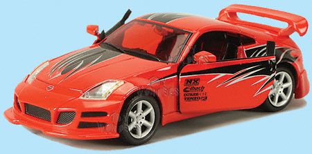 Nissan 350Z 7.25"L die cast metal sports car with opening doors, hood, and trunk and free wheeling.