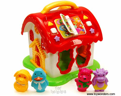 5010A Farm Sweet Home w/ Music. This Farm Sweet Home features flippable page, different buttons with different sounds & melodies, adjustable clock, phone, and removable animal shapes. Requires 2 "AA" batteries (included). Box size: 8.75"L x 8.75"W x 9.25"H. 6 pcs per inner box. For 18 months and up.