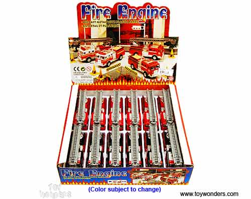 9921/2D Fire Engine. This 4.75" long diecast metal fire truck features with pullback motor action. Rescue ladder truck has a 3 section ladder extends to over 12" long! 12 pcs per display box in assorted styles. 72 pcs per inner box.