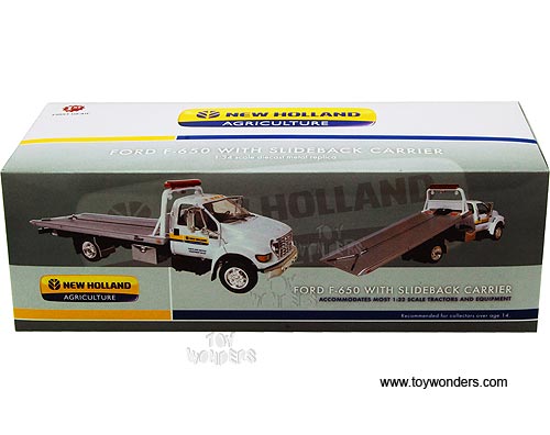 First Gear Agriculture - New Holland Ford F-650 Slideback Carrier (1/34 scale diecast model car, White) 19-3882