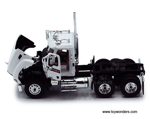 60-0196 First Gear Case IH Agriculture - Mack Granite w/ Tri-Axle Lowboy Trailer. 1:64 scale diecast collectible model. This Mack Granite Tractor is a 12.25"L x 2"W x 2.25"H die-cast metal car with openable hood & doors. This Mack Granite Tractor is manufactured by First Gear. 60-0196 is in WHITE color. Individually packed in a window box. Box size: 14.25"L x 2.75"W x 3.25"H.