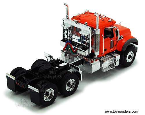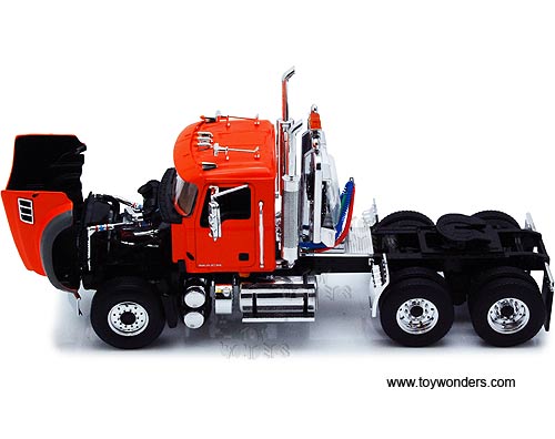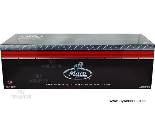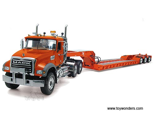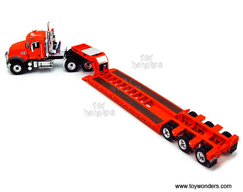 First Gear - Mack Granite Tractor with Tri-Axle Lowboy Trailer (1/34 scale diecast model car, Orange) 10-3956