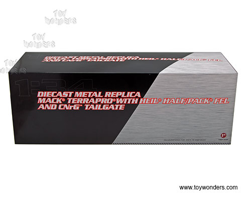 First Gear - Mack TerraPro with Heil Half/Pack Freedom Front Loader Truck with Bin (1/34 scale diecast model car, Red and Blue) 10-4017