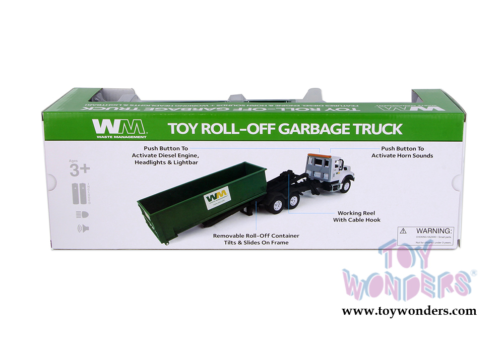 First Gear Waste Management - Plastic International WorkStar with Roll-Off Container Including Lights & Sounds (1/24 scale diecast model car, White/Green) 70-0580