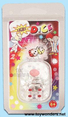 8889 Flashing Dice. 1.25" dice that lights up when it hits the surface. For ages 6+ years. card size: 2.75"x5". Minimum 24 pcs/inner.