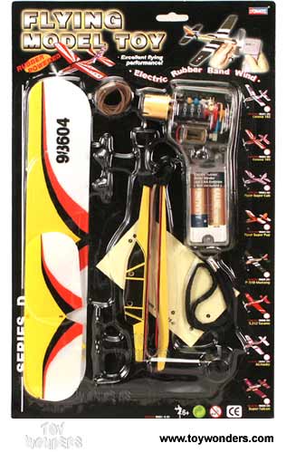 98601/8D Rubber Powered Flying Airplane with Motor. Styrofoam glider easily assembled together, and don't need glue and tools. Blister card size: 9"x 14.75". 24 pcs/inner.