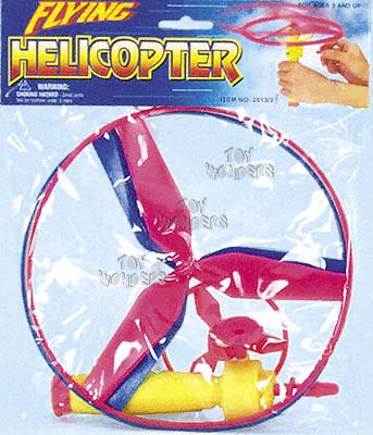 2013/2 Flying Helicopter, Pull the string and watch the helicopter-like disk (7.5" diameter) fly up into the air. Blister card size: 10.5" x 8.5". 24 pcs/inner. Dollar item.