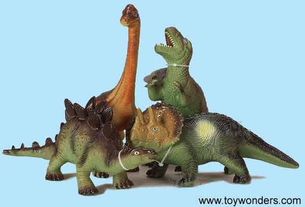 1211/4 Foam. Soft dinosaurs that look realistic with soft squeezable bodies. 12" to 19" long in length. Includes: Tyrannosaurus Rex - T. rex, Stegosaurus, Triceratops, Brachiasaurus.