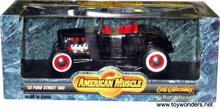7239BK ERTL Ford Street Rod Convertible (1932). 1:18 scale diecast model. This 1932 Ford Street Rod Convertible is manufactured by American Muscle Ertl Collectibles. RC2 Brands. This 32 Ford Street Rod has exterior BLACK color with RED interior.
