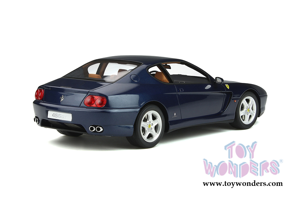 GT239 GT Spirit - 1992 Ferrari 456 GT Hard Top. 1:18 resin model collectible model car. This is a 10.5"L x 4.5"W x 3.5"H resin car. Real rubber tires, detailed interior and exterior. Highly detailed components (doors, engine hood, etc. cannot be opened!) This Ferrari is manufactured by GT Spirit. Box size is 13.5"L x 7.5"W x 6.5"H. Item GT239 is in Swaters BLUE color. Limited Edition to 999 pcs.