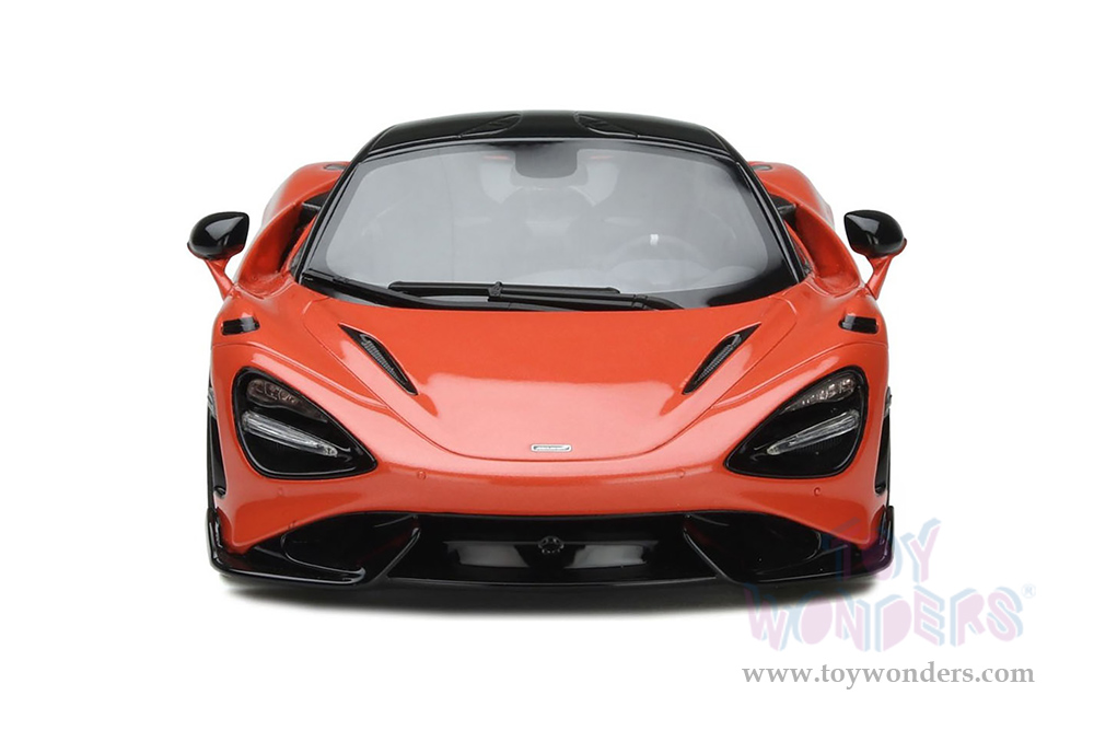 GT327 GT Spirit - 2020 McLaren 765 LT Hardtop. 1:18 resin model collectible model car. This is a 10"L x 4.25"W x 3.5"H resin model car. Real rubber tires, detailed interior and exterior. This McLaren is manufactured by GT Spirit. Box size is 13.5"L x 7.5"W x 6.5"H. Item GT327 is in Helios Orange with black top. Car is not openable.