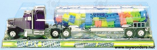 13.75"L friction truck carries a tank full of blocks. Tank opens so blocks can be built separately or on tank.