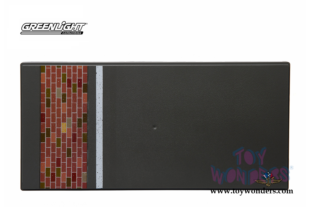 55021 Greenlight Acrylic Display Case. It features displaying a 1:18 scale vehicle with clear sides and top. It features a decorative base simulating asphalt and bricks. Show case measures 13"Lx 6.5"Wx 5"H. 6 pcs inner case. This accessory is manufactured by Greenlight.