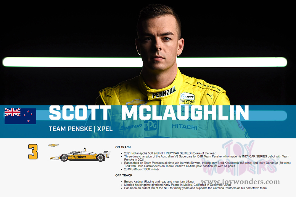 Greenlight - 2022 NTT IndyCar Series #3 Scott McLaughlin / Team Penske, Pennzoil (1/64 scale diecast model car, Yellow) 11543/48