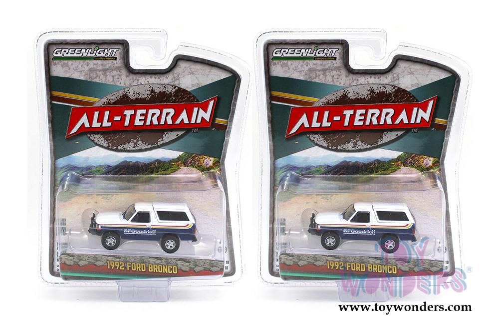 Greenlight - All Terrain Series 10 | Ford Bronco with Off–Road Parts "BFGoodrich Tires" (1992, 1/64 scale diecast model car, Blue/White) 35170E/48