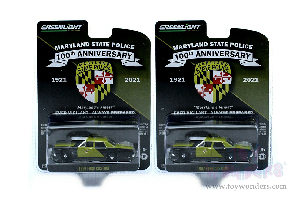 Greenlight - Anniversary Collection Series 13 | Ford Custom - Maryland State Police 100th Anniversary (1967, 1/64 scale diecast model car, Yellow/Black) 28080A/48