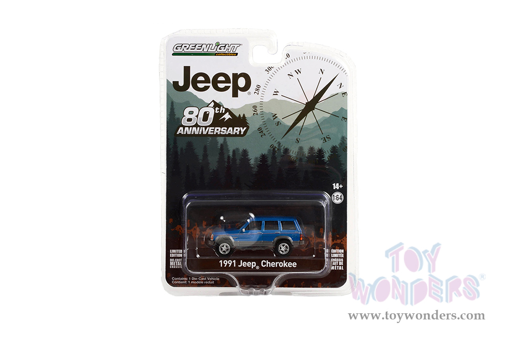 Greenlight - Anniversary Collection Series 14 | Jeep® Cherokee - Jeep® 80th Anniversary Edition (1991, 1/64 scale diecast model car, Blue Metallic) 28100D/48