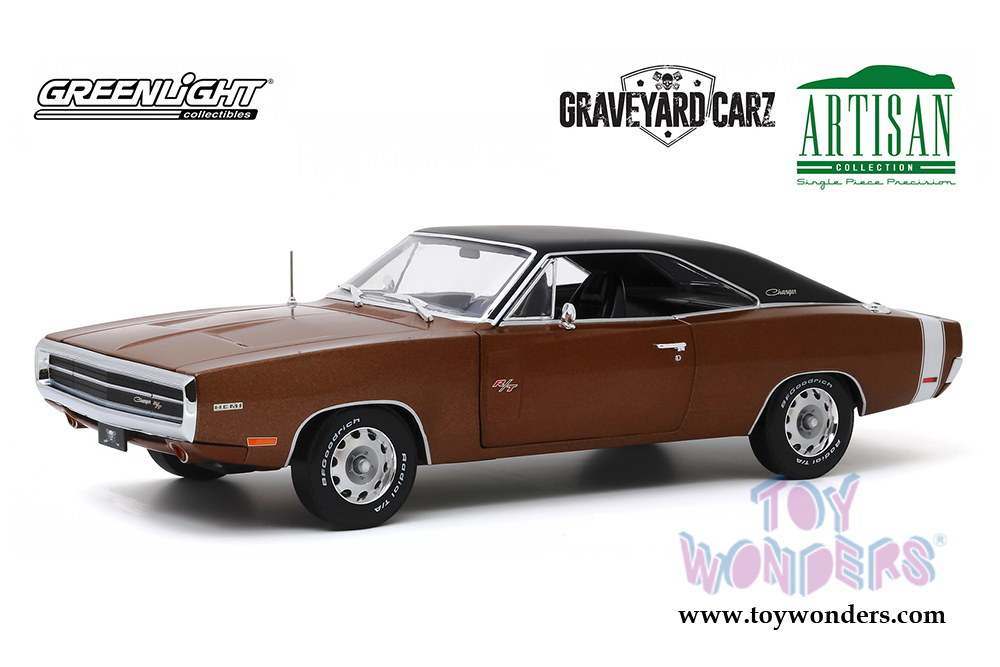 Greenlight - Artisan Dodge Charger R/T Graveyard Carz 2012 - Current TV Series (1970, 1/18 scale die cast model car, Dark Burnt Orange/Black) 19077