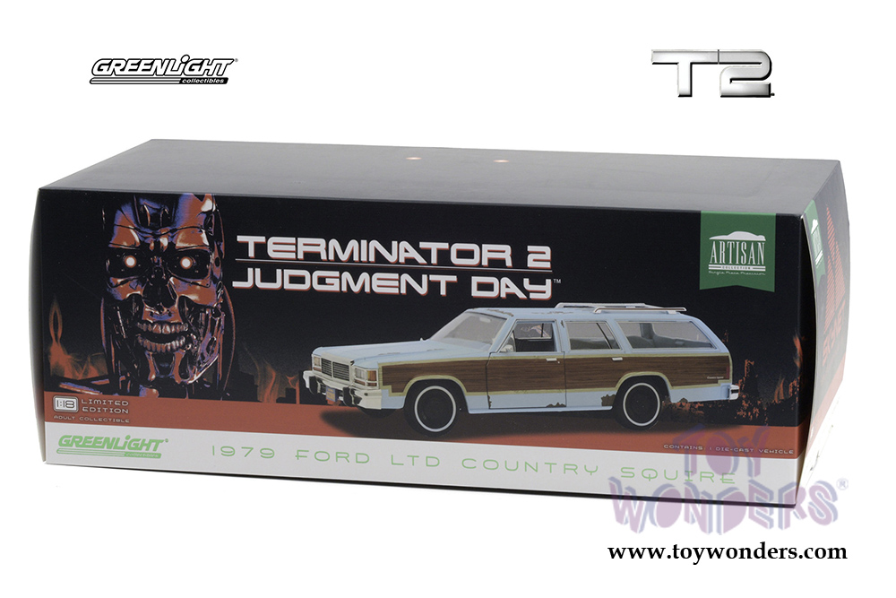Greenlight - Artisan Ford LTD Country Squire with Wood Grain Paneling (Weathered) "Terminator 2: Judgment Day" (1979, 1/18 scale diecast model car, Light Blue) 19085