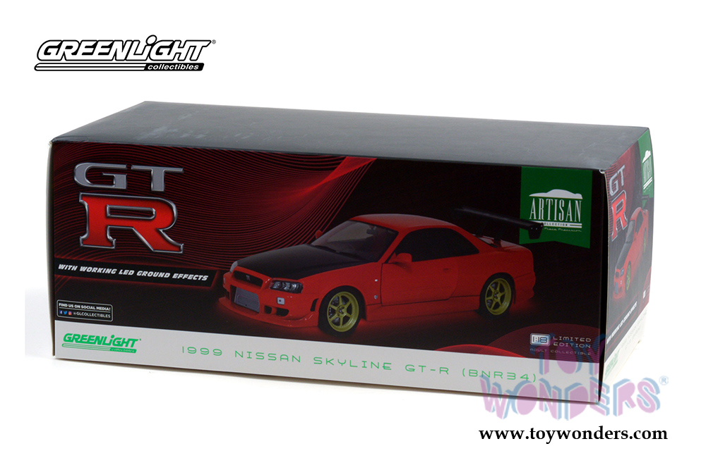 Greenlight - Artisan Nissan Skyline GT-R R34 with Neon LED Light Underglow (1999, 1/18 scale diecast model car, Red/Black) 19052