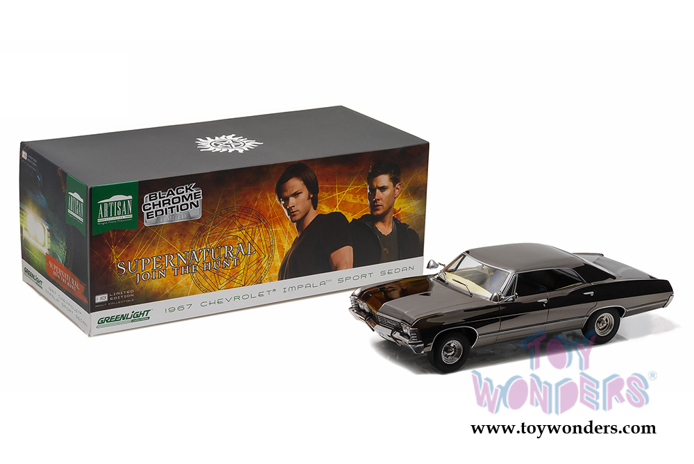 Greenlight - Artisan Supernatural (TV Series 2005) - Chevrolet Impala Sport Sedan Black Chrome Edition (1967, 1/18 scale diecast model car, Black) 19024