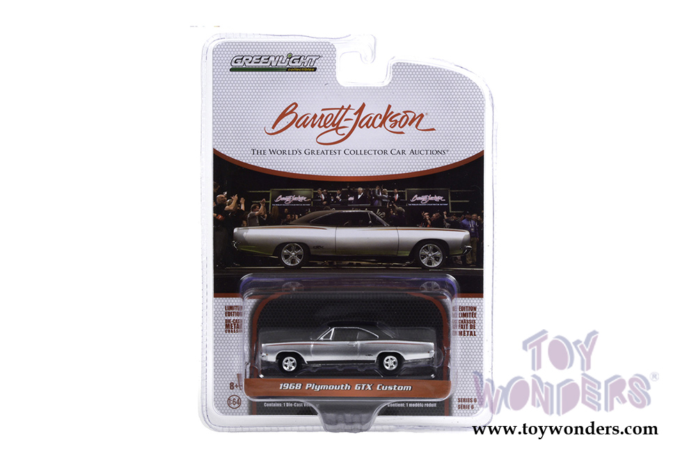 Greenlight - Barrett Jackson Scottsdale Series 6 | Plymouth GTX Custom Hardtop (Lot #3000) (1968, 1/64 scale diecast model car, Silver/Black) 37220A/48