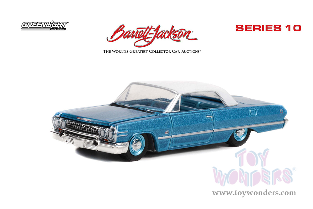 Greenlight - Barrett Jackson Series 10 | Chevrolet® Impala SS 409 Convertible (Lot #1119) (1963, 1/64 scale diecast model car, Azure Aqua Blue) 37260B/48